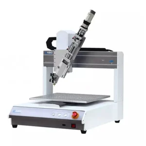 This is a 30cc hot melt adhesive dispensing machine. It works with one-piece aluminum casted Cartesian robot body, it is strong structure and stable operation. The machine has compacted, but with bigger working range, 380x380x100mm XYZ. The dispenser equips with ceramic heating barrel, and one pre-heater for effectively and efficient work. The heating controller works with a digital temperature control, can be accurately controlled to ± 1 ℃. This is professional, heavy-duty industrial adhesive fluid, glue automated desktop dispensing machine. Besides 30cc packaged hot-melt dispensing machine, we also provide different volumes of hot-melt dispensing system, such as 100cc, 10 liters and others.