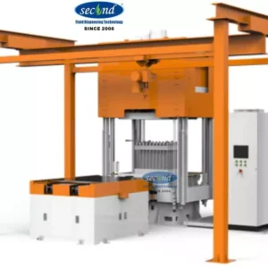 The design of the system stacking line aims to develop a fully automatic assembly line for stacking and assembling PEM hydrogen fuel cell battery stacks. The loading and unloading of materials in this line is realized by robots, stack end plates, current collector plates, bipolar plates, etc. The stacking of materials is completed by the robot, the high-precision servo press ensures the precise pressure of the stack, the visual alignment system ensures the accuracy, the stack is automatically tightened, and the multi-directional air tightness test is performed on the stack by the flow method.
