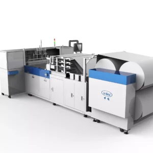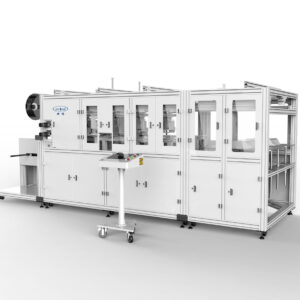 This is a fully automatic operating machine. It is high capacity production machine equips with dual-working stations for prepping the domestic RO leaf, tricot pads.