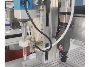In the field of adhesive material application, there are some extreme situations that require to mixing and dispensing very small amount of mixed materials on products accurately. This machine was developed, it is especially designed to dispense 2 components materials with less than 1g. It is suitable for various kinds of two-component fluids, or glues.