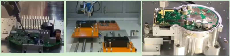 Our two-component In-line automated vacuum potting system machine is often used in the LED driver, power supply dispensing, with this encapsulated process, the product is heat dissipation, moisture-proof, waterproof, and flame retardant.