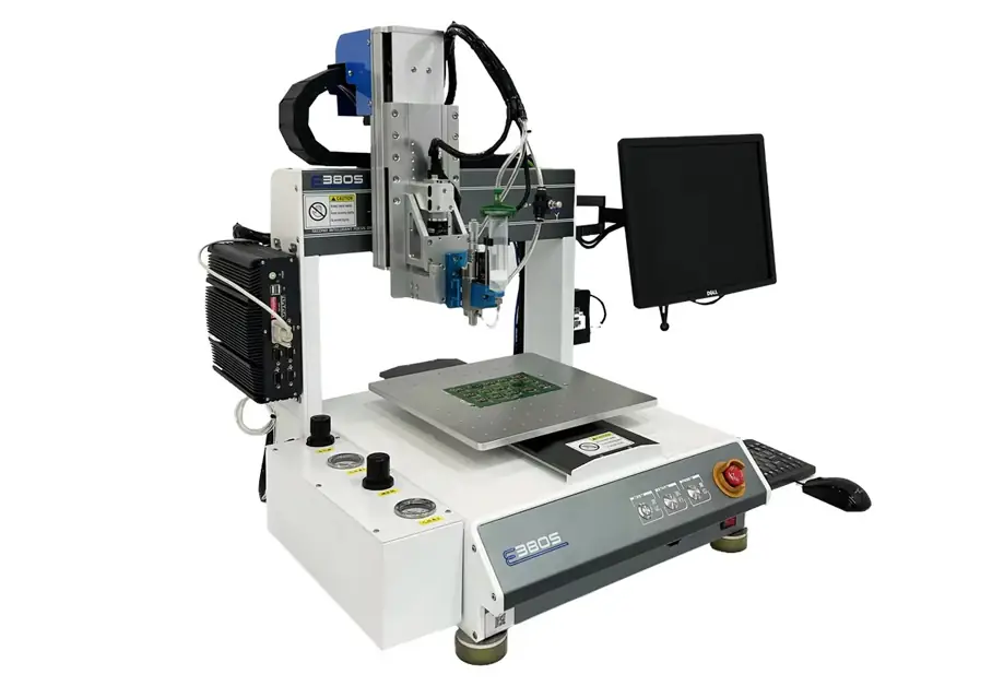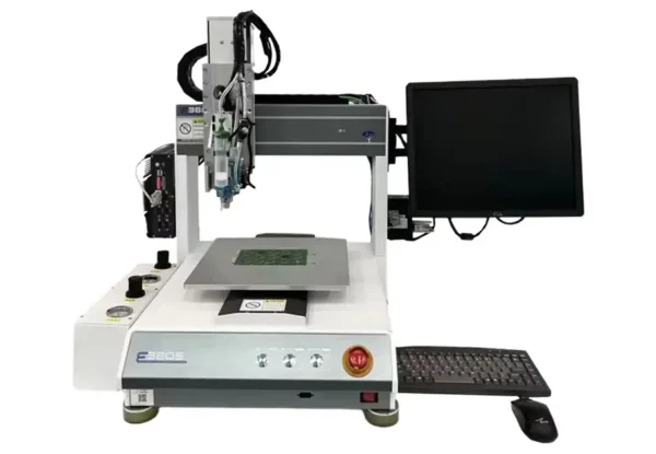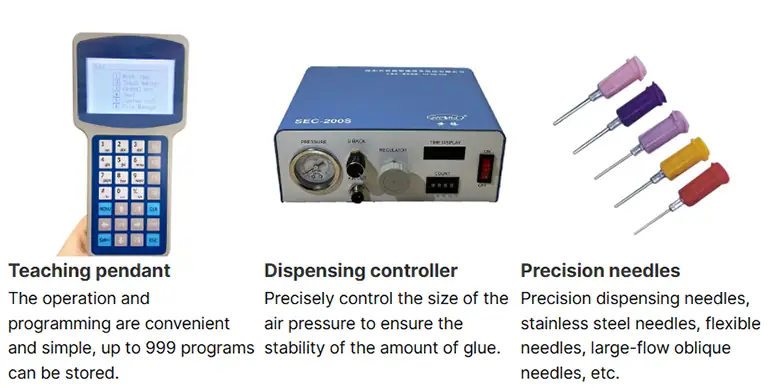 SEC-E380S is durable desktop design automatic glue dispensing machine, one machine for multi-purpose, can equips with different valves and feeding system.
