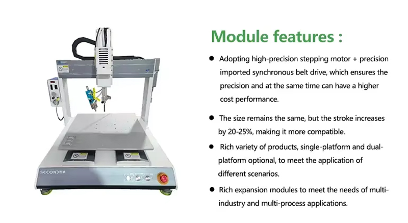 The platform has more advanced and powerful functions, which can be equipped with functions such as visual positioning, automatic calibration, glue dispensing detection, laser height measurement and compensation, product information scanning, MES system docking, etc., to meet the use of various industries and multiple scenarios