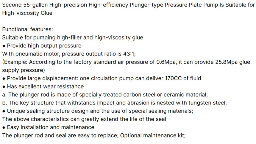 Suitable for 2600 ml silicone sleeve packaging. Easy to operate and maintain. Can communicate with automatic machine . Stable glue output. The glue output accuracy can reach up to ± 3%