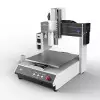 This is an industrial 30cc syringe fluid, adhesive dispensing machine. It works with one-piece aluminum casted Cartesian robot body, it is strong structure and stable operation. The robot has compacted, but with bigger working range, 380x380x100mm XYZ. It is also flexible to work and match with different glue filling systems, from 5cc syringe, 300cc cartridge, 1 gallons, 5 gallons, and so on. With this design, it is truly realize the dispensing of different adhesives materials for different products. This is professional, heavy-duty industrial adhesive fluid, glue automated desktop dispensing machine.
