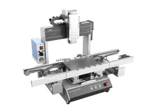 This machine equips with 4-axis, besides XYZ axis, another additional axis is R-axis, it is able to rate back and forth to cover 360 degree of dispensing, especially suitable to dispense the product with odd edge or in circular shape. It can pair and work with different dispensing valves and material filling systems, such as 5cc ?C 50cc and so on syringe.