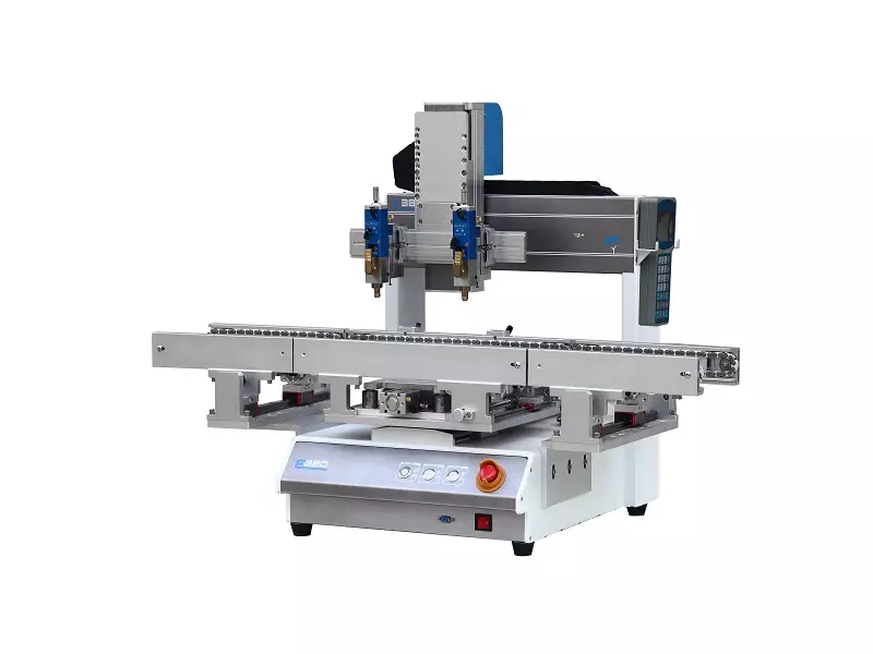 Automated inline desktop dispenser with conveyor SEC-E380L Benchtop Dispensing Platform