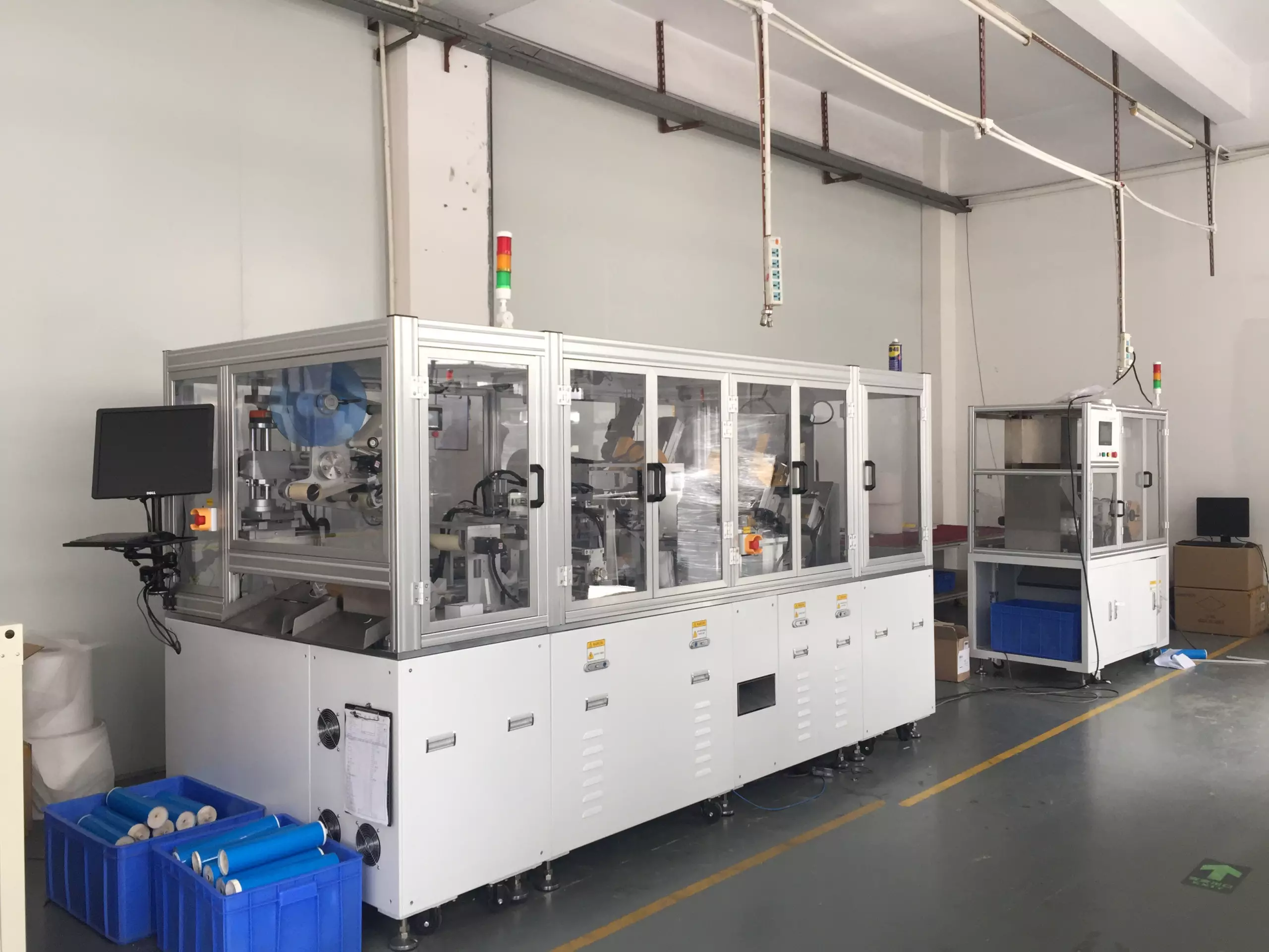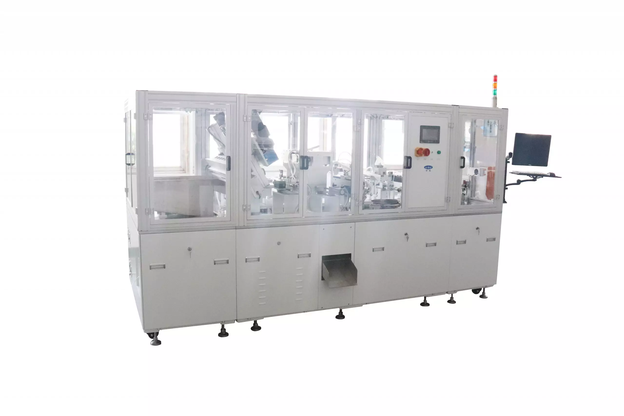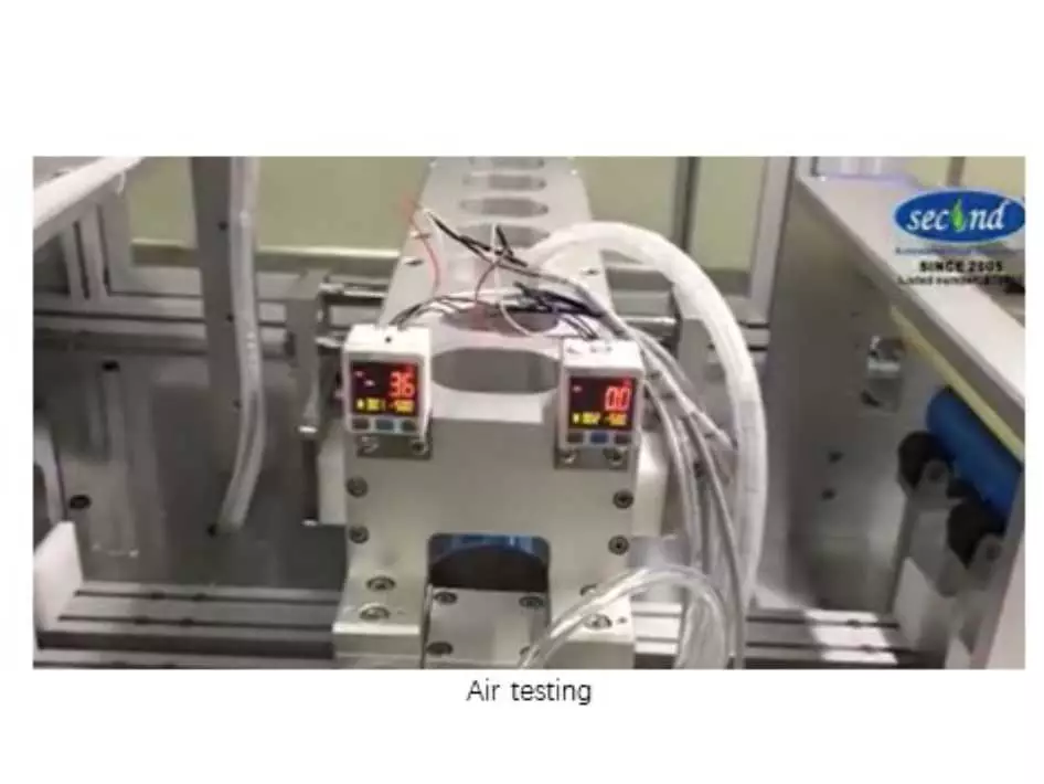 With this machine, operator can load about 100 units of spiral-wind cartridges on to its material bin, and the machine will automatic feeding cartridge to its place one by one. It will start to do edges trimming, edges pulling, adding O-rings, air-tightness detection, labeling and record barcode, and automatic unloading. This is a Smart-machine, it will automatically sort out the air-test failed cartridge and drop it to a separated bin.
