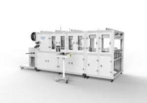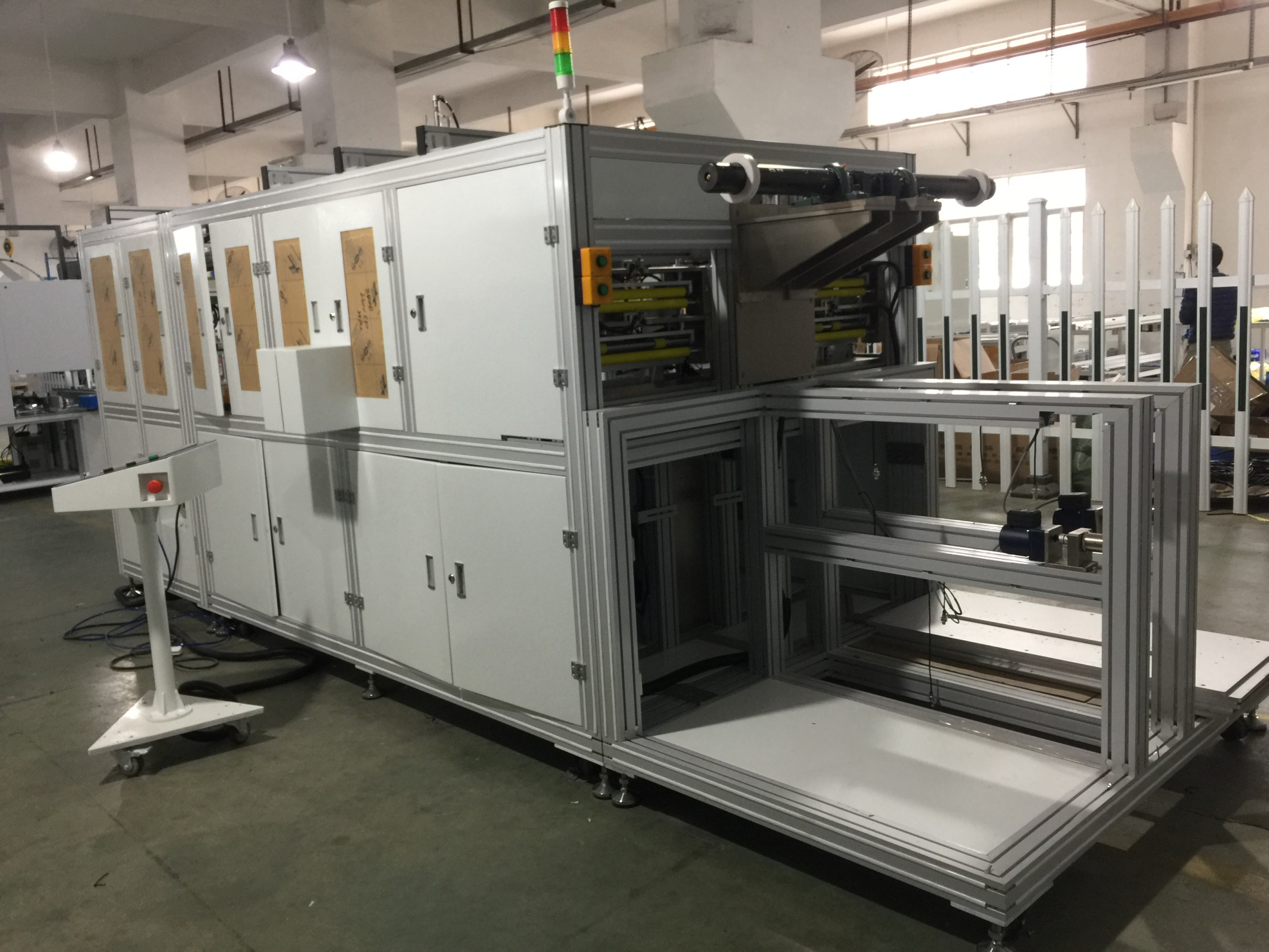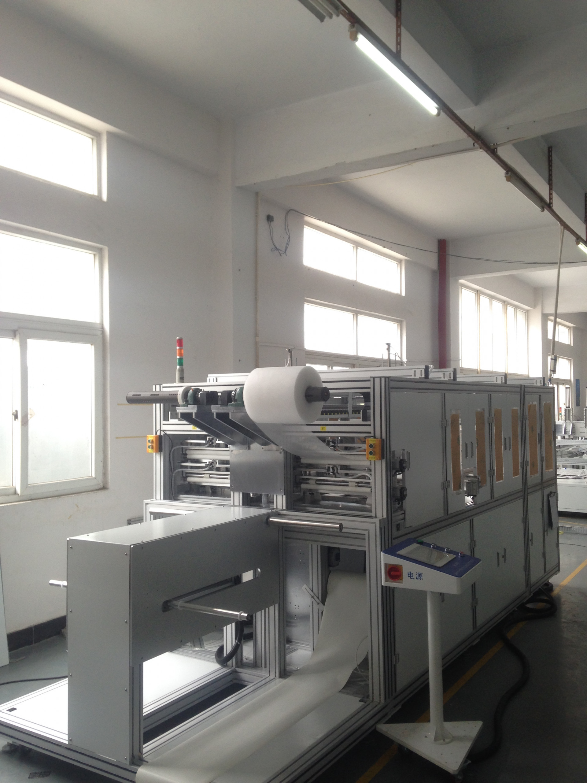 This is a fully automatic operating machine. It is high capacity production machine equips with dual-working stations for prepping the domestic RO leaf, tricot pads.