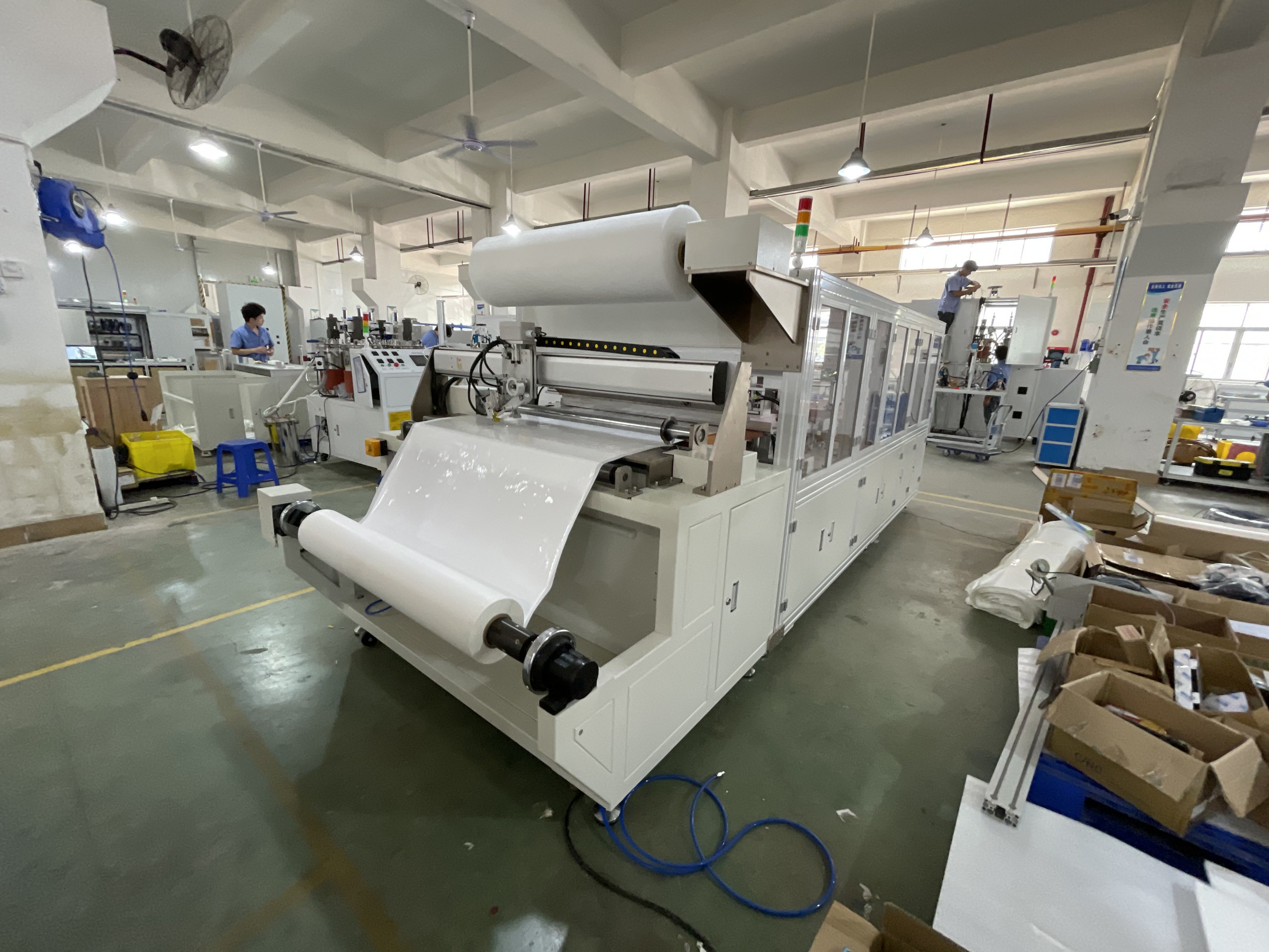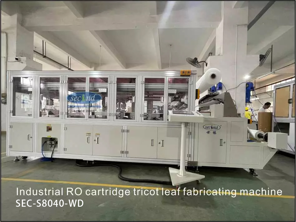 The equipment is suitable for the horizontal/cross-cut folding, and stacking process of household RO cartridge leaf, tricot. It cuts the membrane horizontally for different type of prepping need.