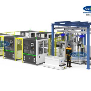 The design of the system stacking line aims to develop a fully automatic assembly line for stacking and assembling PEM hydrogen fuel cell battery stacks. The loading and unloading of materials in this line is realized by robots, stack end plates, current collector plates, bipolar plates, etc. The stacking of materials is completed by the robot, the high-precision servo press ensures the precise pressure of the stack, the visual alignment system ensures the accuracy, the stack is automatically tightened, and the multi-directional air tightness test is performed on the stack by the flow method.
