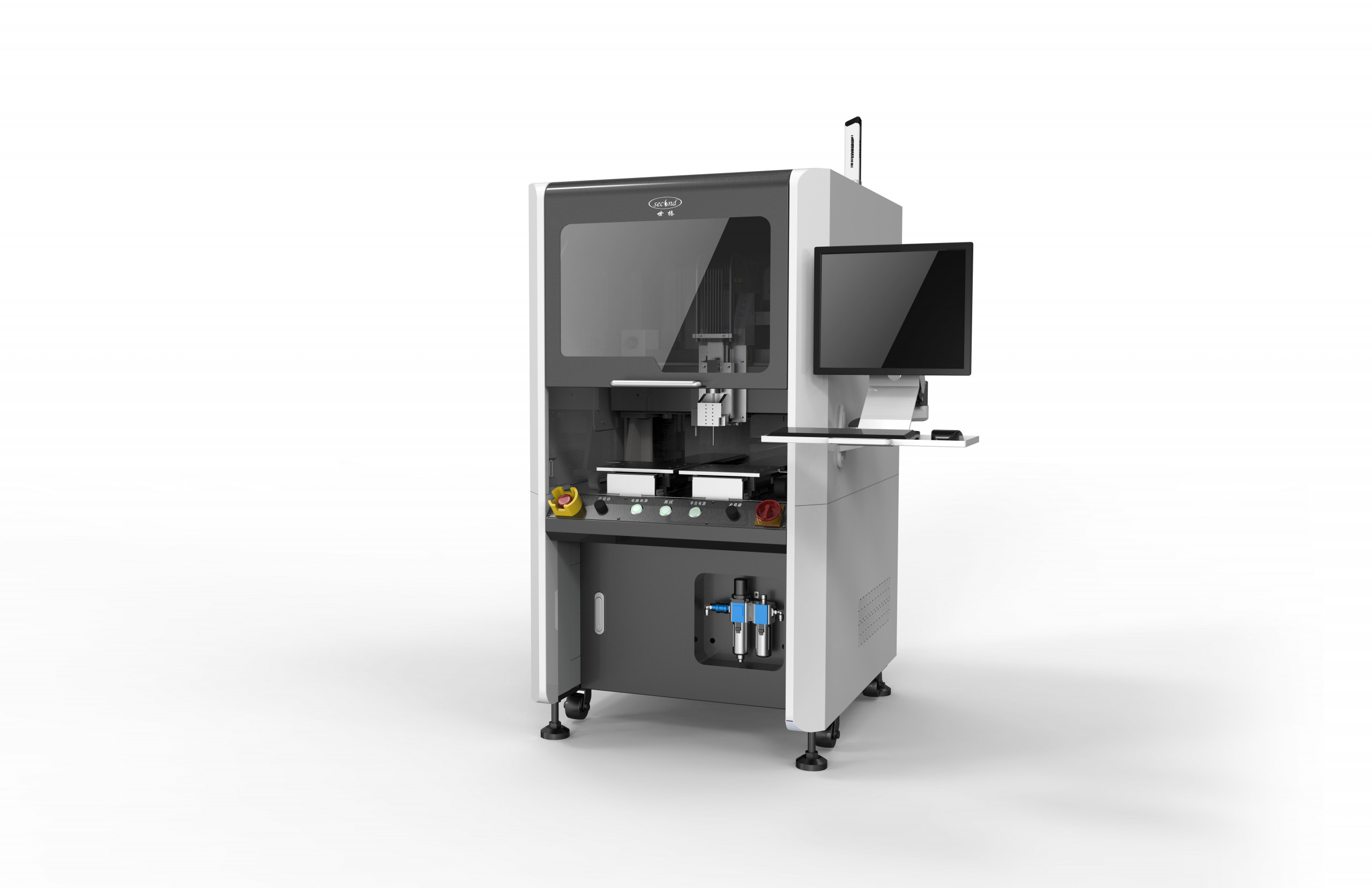 This industrial adhesive dispensing machine equips with smart-scanning system, the camera will capture the randomly placed products, and analyst to dispense. It is suitable for dispensing processes that has bigger dispensing spot, tolerance, and products that can be placed directly on the open and flat dispensing desk, such as charging plugs, electronic transformers, power-adapter dispensing and assembling.