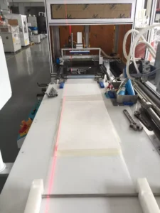 This is a fully automatic operating machine. It is high capacity production machine equips with dual-working stations for prepping the domestic RO leaf, tricot pads.