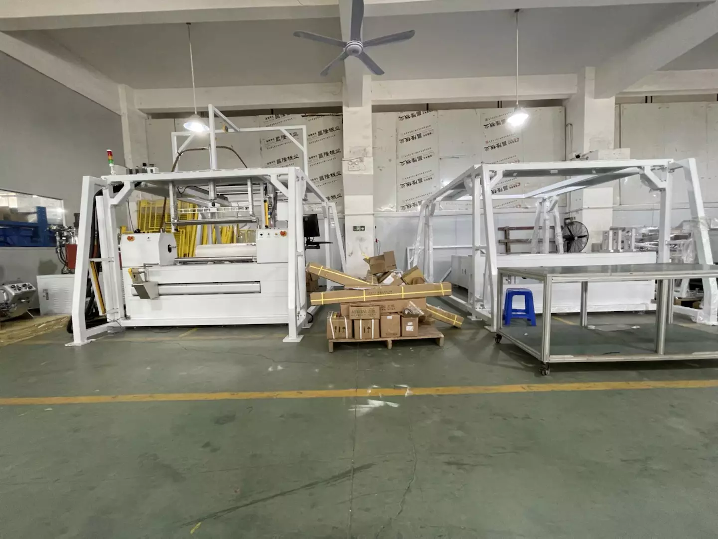 This is a fully automatic industrial RO cartridge element tricot, leaf cutting, inserting, folding machine. It is suitable for preparing the materials for 4040-8040, ie, 4-8 inches.
