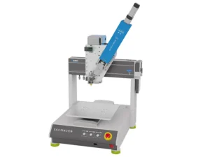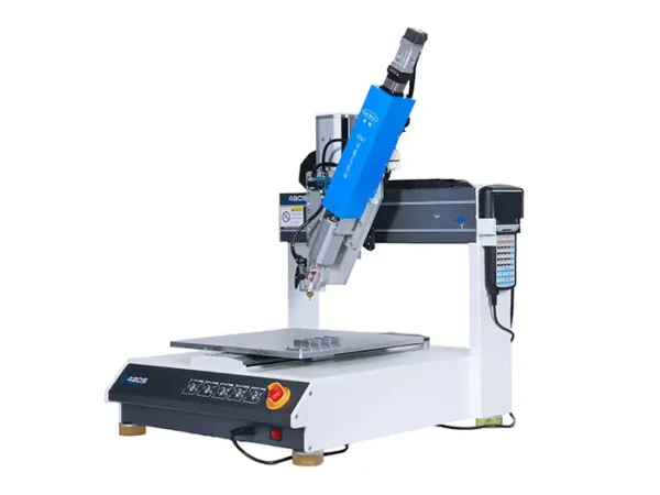 This is an industrial 30cc syringe fluid, adhesive dispensing machine. It works with one-piece aluminum casted Cartesian robot body, it is strong structure and stable operation. The robot has compacted, but with bigger working range, 380x380x100mm XYZ. It is also flexible to work and match with different glue filling systems, from 5cc syringe, 300cc cartridge, 1 gallons, 5 gallons, and so on. With this design, it is truly realize the dispensing of different adhesives materials for different products. This is professional, heavy-duty industrial adhesive fluid, glue automated desktop dispensing machine.