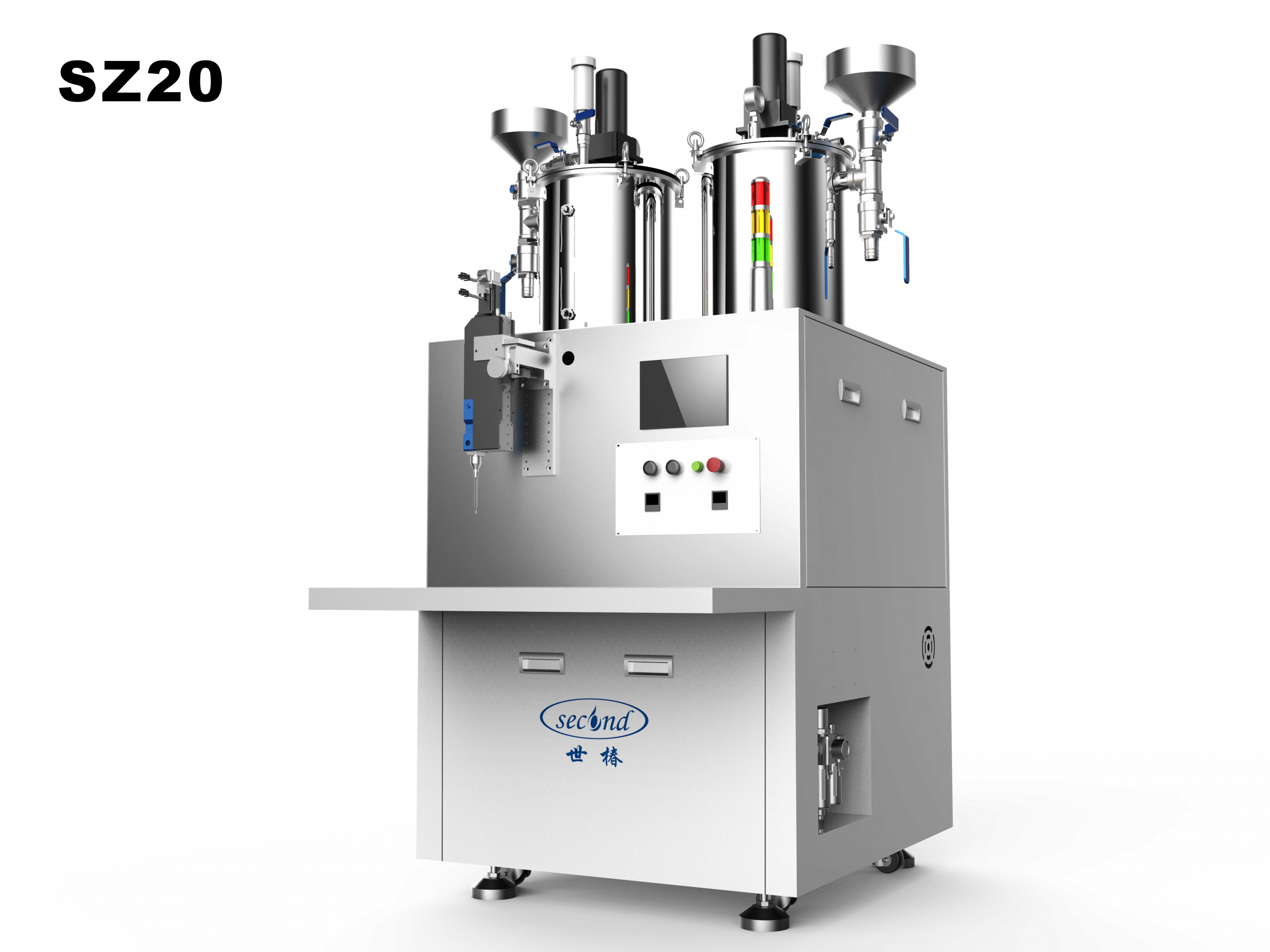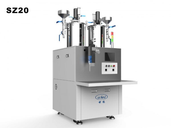 The machine equips with 3 axis robotic system. It is operated by Second originally developed software, windows based. It can not only set trajectories such as set points, lines, circles, and arcs, but also has advanced functions such as three-dimensional potting through program setting. It is automatic metering, mixing, and dosing base on pre-determined ratio. The machine equips with automatic refill, and degassing system. It can also add agitate stirring, tank heating, and automatic valve cleaning. The operation is simple and user friendly, which greatly saves the manual mixing time, improves efficiency, and also save material and labor cost.