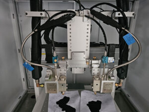 Independently researched and developed R-axis needle head linkage rotation function, equipped with ceramic rotary valve, which is absolutely leading in the application field of conductive adhesive.