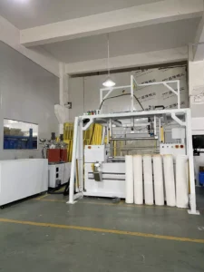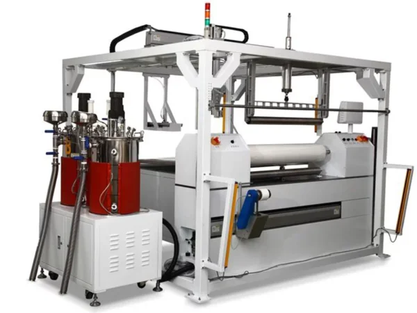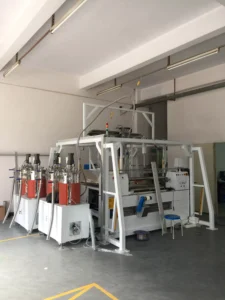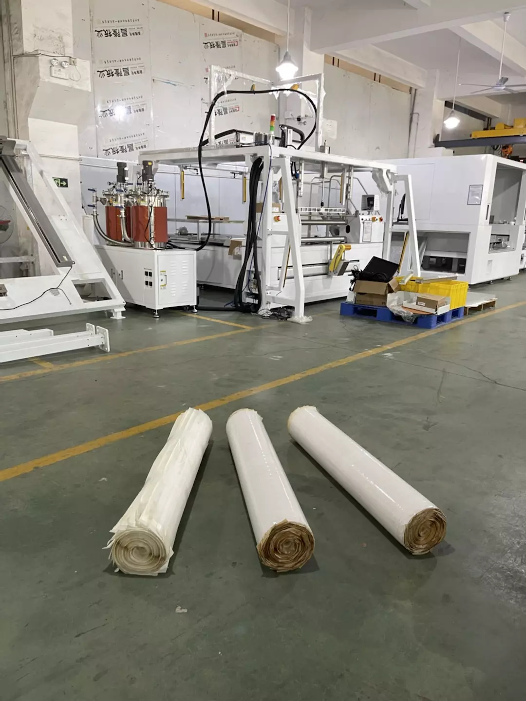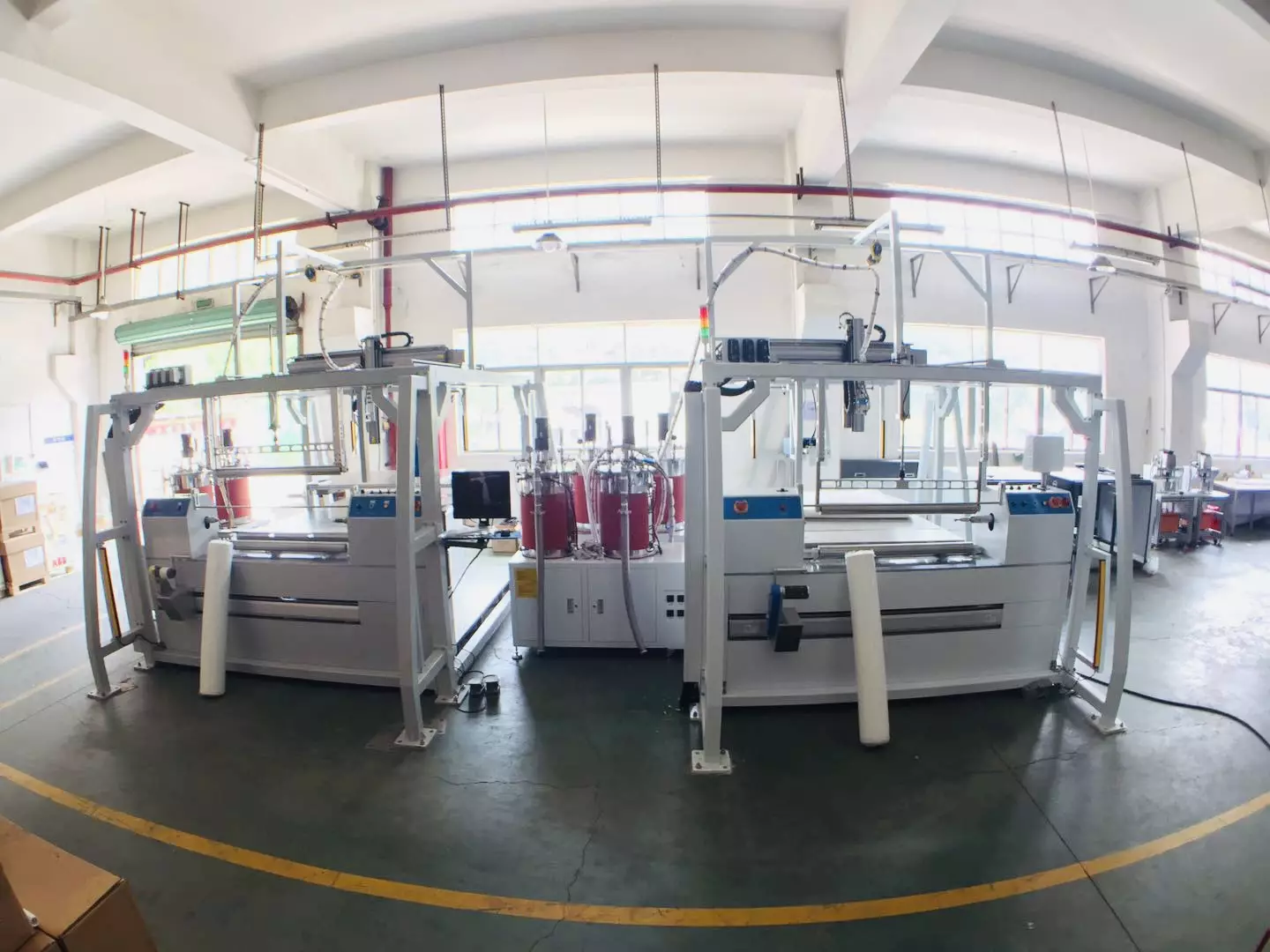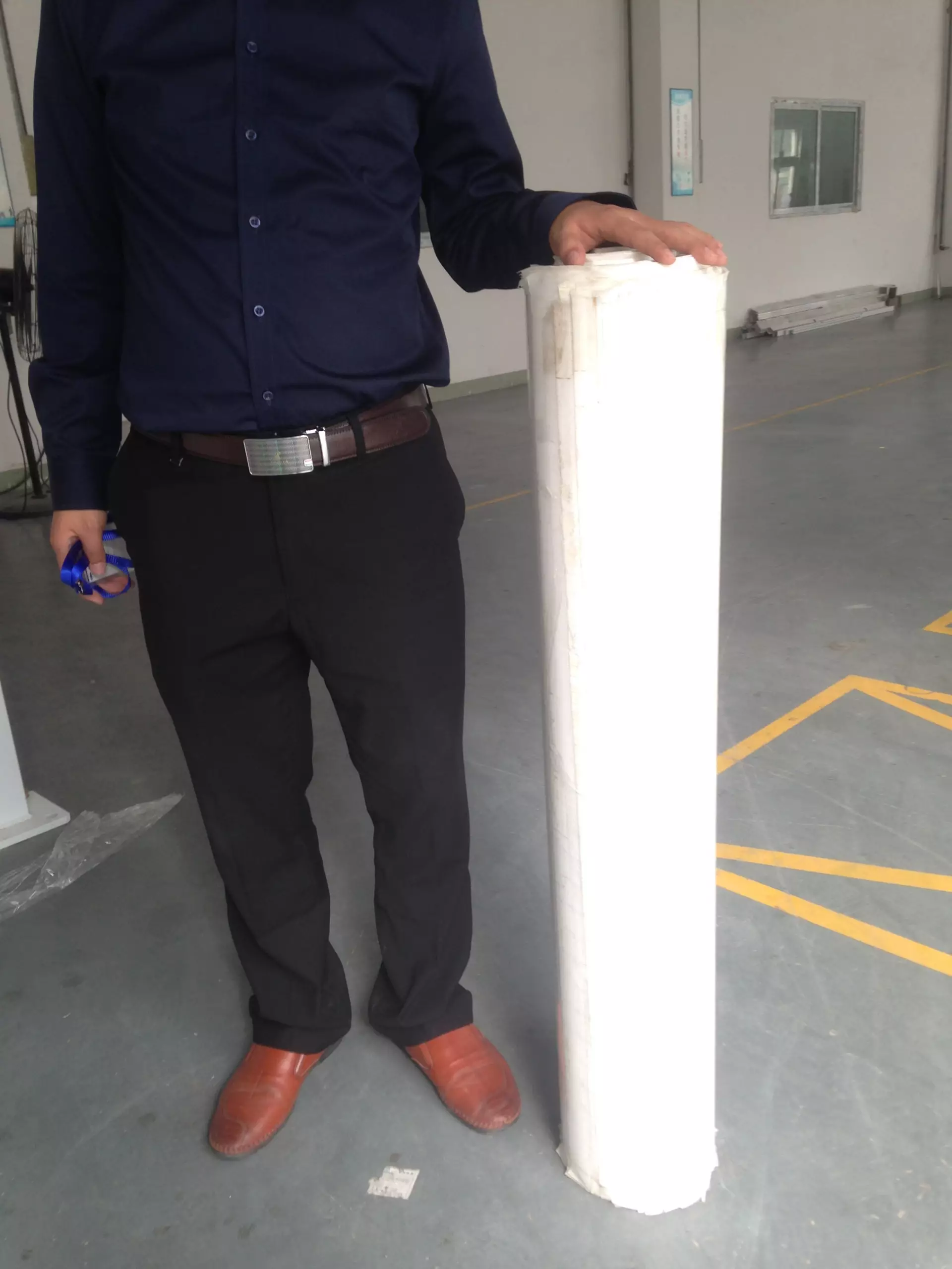 This is semi-automatic industrial reverse osmosis (RO) cartridge element rolling, it can roll SWRO, BWRO, 4040-8040 sizes of elements. It will need two people to operate at the same time. It is MMI type of machine, in the man-machine interaction area there’s safety light curtain installed for good protection. The machine comes with rolling table, adhesive dispensing, winding, ultra-sonic welding, and outer taping system, all in one. It is for mass production, and good for quick-change over to produce different sizes of the elements compare to the full-automatic machine.