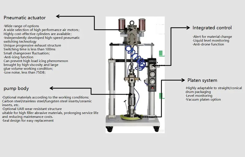 1.When loading glue for the first time, click the A/B cylinder to press the glue up, load glue barrel A and glue barrel B,exhaust the air in the pipeline, and start one of the cylinders.After that, you only need to replace the glue barrel that has run out of glue.