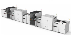 SEC-450J, In-line conformal coating machine:In-line coating track with automatic width adjustment. Can be equipped with a variety of coating modules, can realize multi-track, point and line coating.