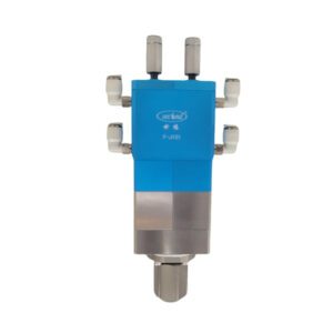 1. Acting on the switching and mixing of two-component fluids in the flow channel, adopting the pull-back type glue shut-off and static mixing.