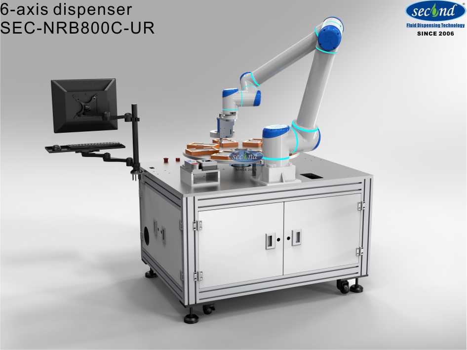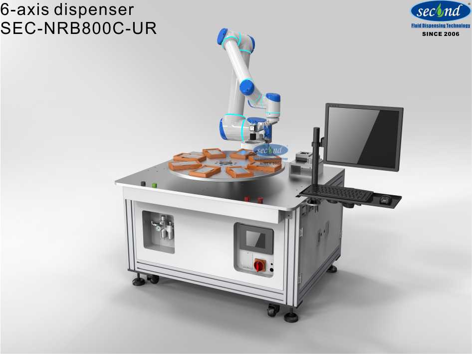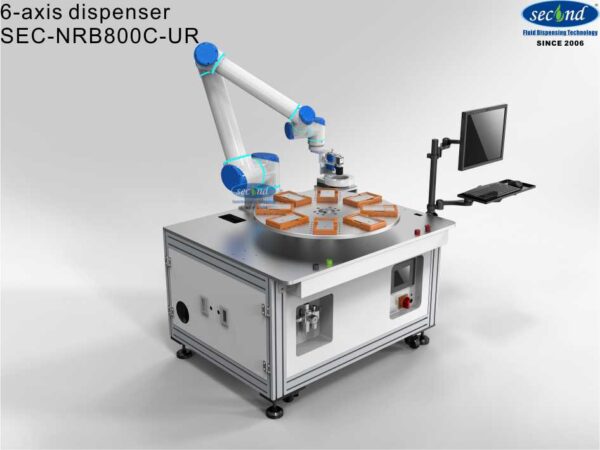This is automated industrial adhesive material dispensing robot works with turntable dispensing cobot?SEC-NRB800C-UR