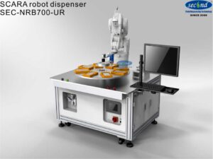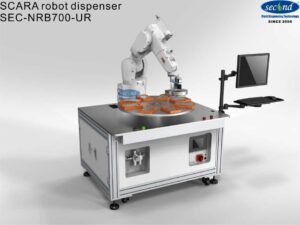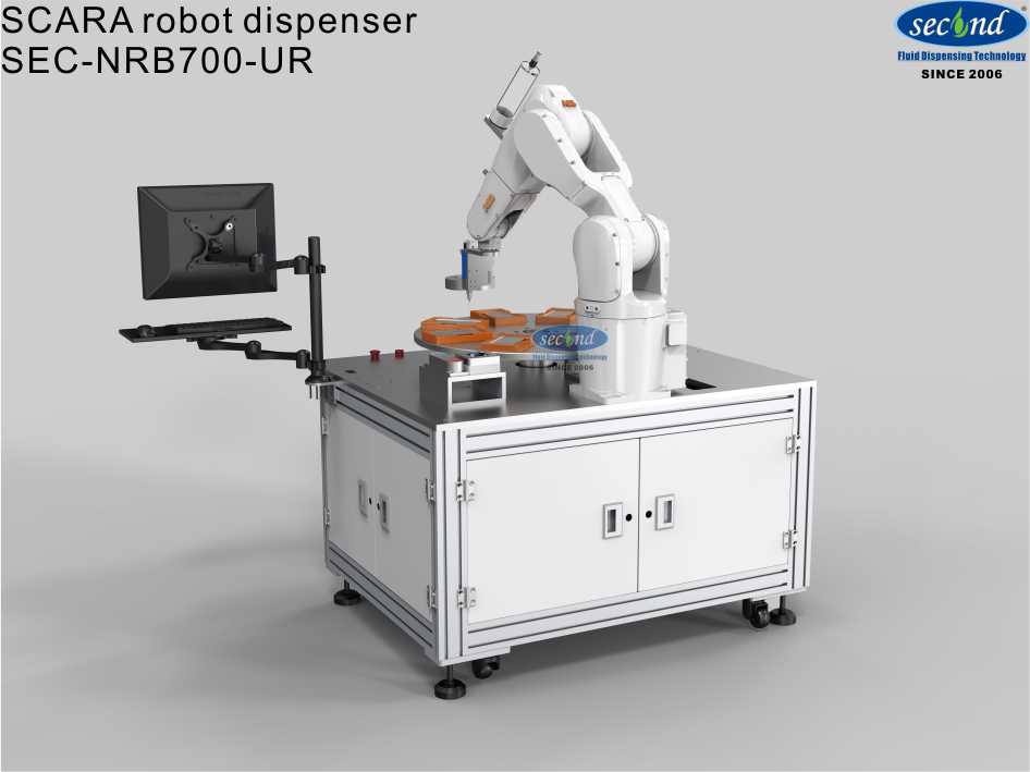 This is automated industrial adhesive material dispensing robot works with turntable dispensing robot?SEC-NRB700-UR