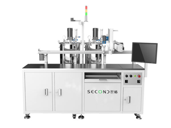 The machine equips with 3 axis robotic system. It is operated by Second originally developed software, windows based. It can not only set trajectories such as set points, lines, circles, and arcs, but also has advanced functions such as three-dimensional potting through program setting. It is automatic metering, mixing, and dosing base on pre-determined ratio. The machine equips with automatic refill, and degassing system. It can also add agitate stirring, tank heating, and automatic valve cleaning. The operation is simple and user friendly, which greatly saves the manual mixing time, improves efficiency, and also save material and labor cost.